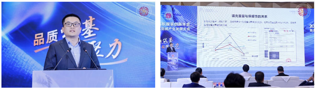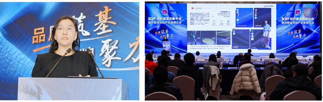 “中国不缺好羽绒,缺的是让世界相信它好的能力。”中国纺织信息中心供应链协作部主任刘长江在《以可信为基,以透明为证——羽绒产业高质量发展的价值表达新路径》的分享中指出,中国羽绒产业规模、供应链完整性居全球前列,在价值升级与品牌认同方面具备极好的发展机遇。他表示,当前产业已进入可信竞争阶段,可通过构建在验证、身份、透明、性能等领域具备高价值的表达体系,助力中国羽绒产业从“被生产”走向“被理解、被信任、被选择”。